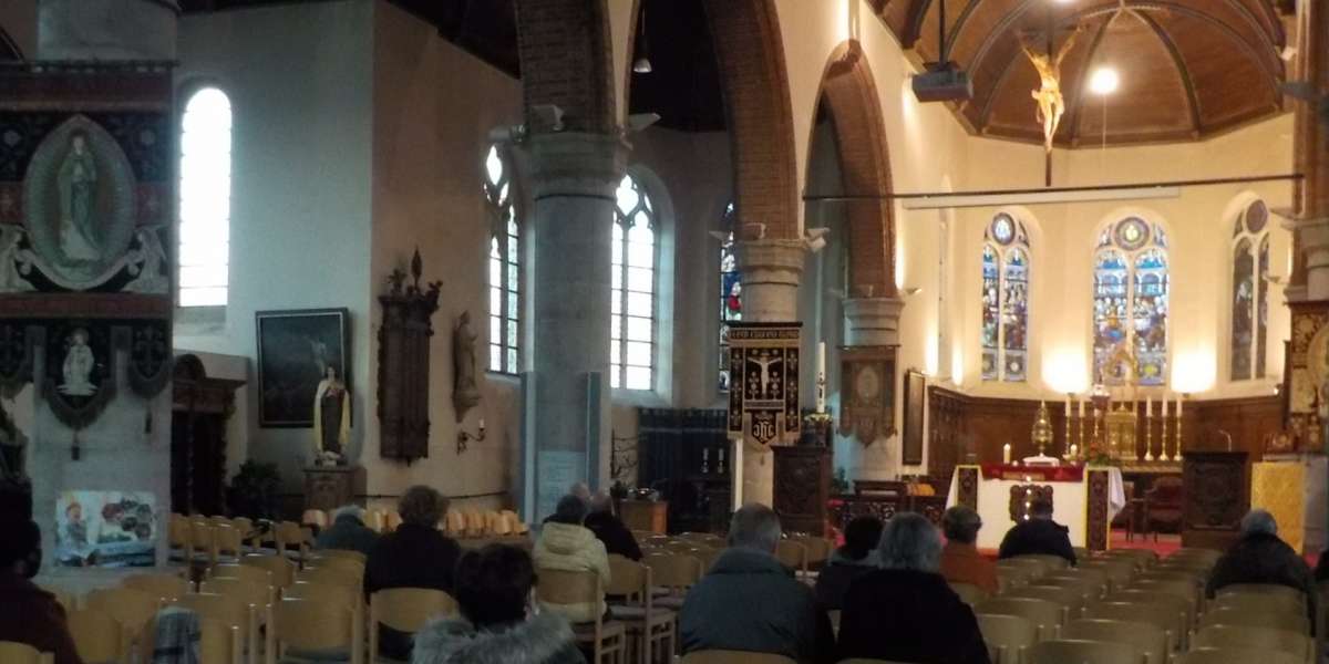 ln samenwerking met de priesters en parochieverantwoordelijken nodigden we op donderdag 18 november de gelovigen uit om tussen 14 en 17 u even tijd te maken voor een korter of langer moment van aanbidding in de parochiekerk van Geluwe. Daarvoor mochten we de prachtige monstrans van de parochie gebruiken. Een mooi aantal gelovigen ging graag in op de uitnodiging om deze tijd aan de Heer te schenken. Om 17 u werd de aanbidding afgesloten met een eucharistieviering, opgedragen door E.H. pastoor em. Guido Marchand