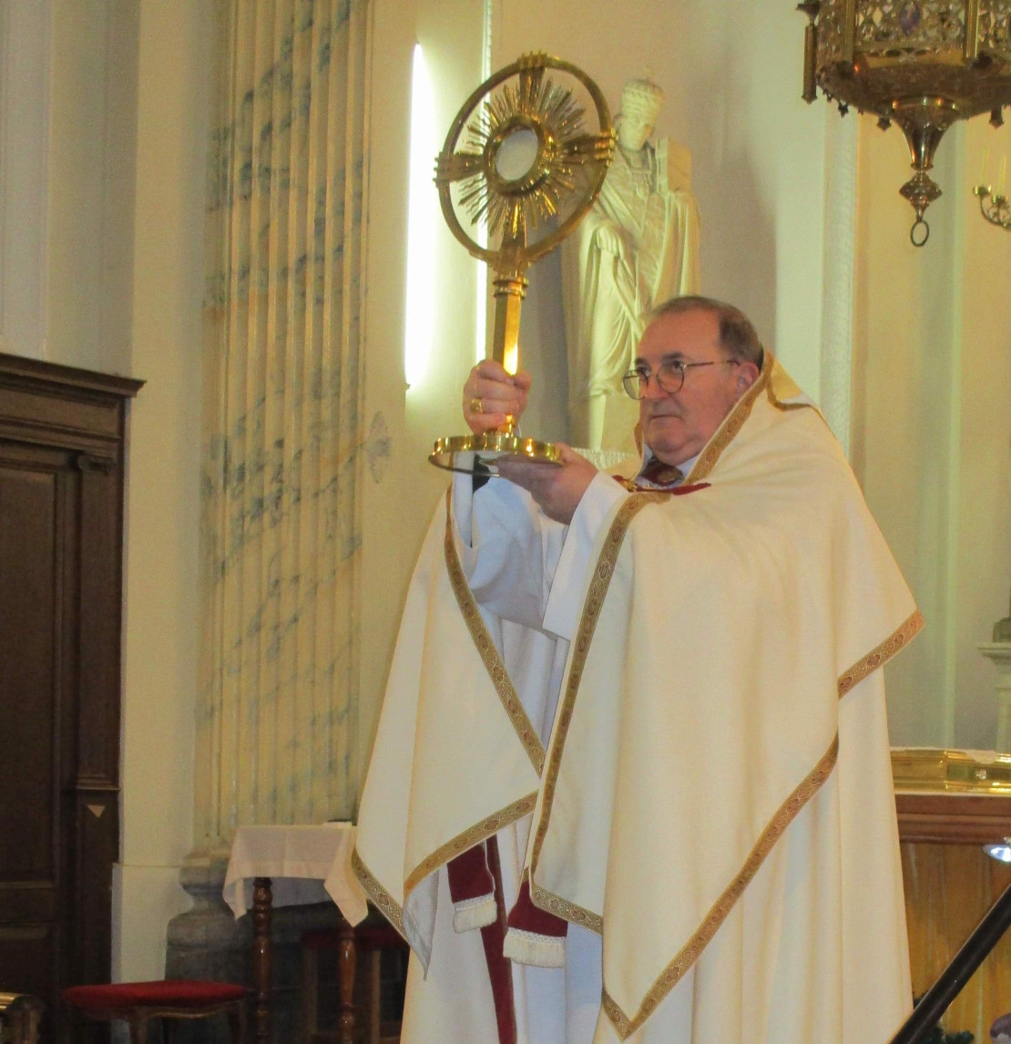 De vespers, gezongen in de kerk van Villers-Saint-Amand, werden gevolgd door een moment van aanbidding, waarin gebed voor roepingen en gebed voor de bisschop werden opgenomen. De kleine vergadering was representatief voor het hele bisdom en voor ieder van u. Uw mensen, uw zorgen, uw vreugden en uw smarten, hadden hun plaats in dit mooie, heilige en vurige gebed.