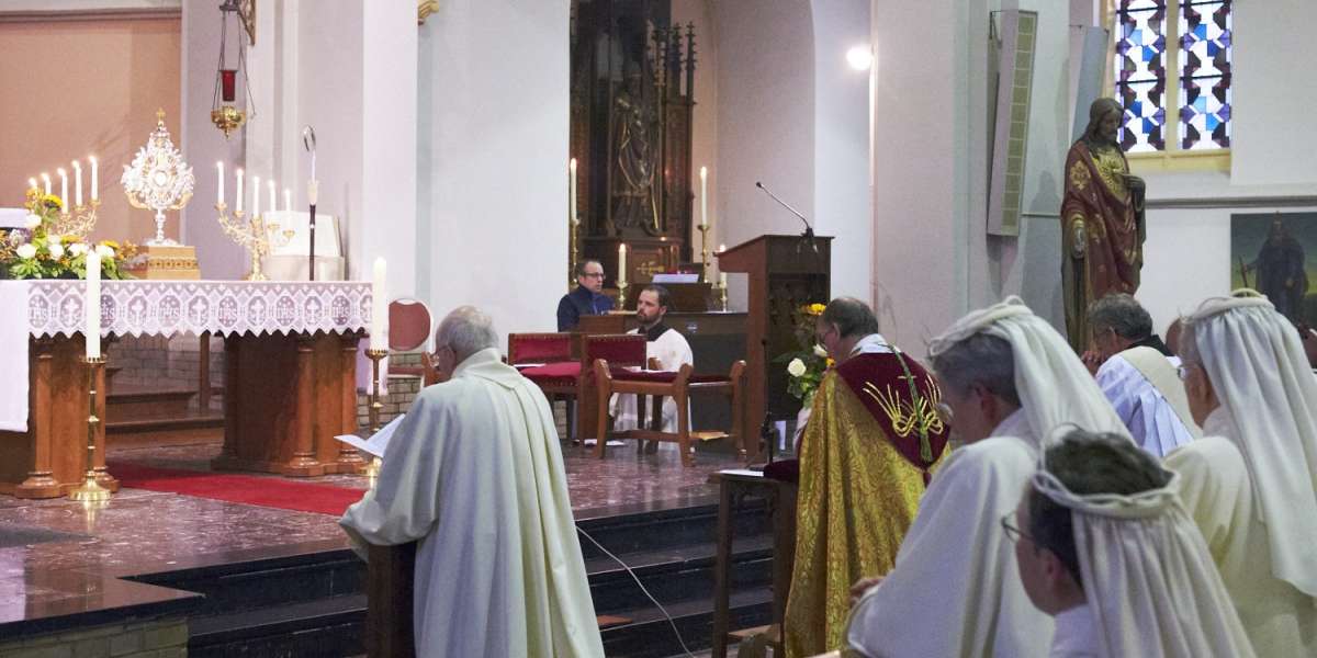 Met zo'n 160 mensen was de kleine St-Clemenskerk van Merkelbeek afgeladen vol bij het maandelijks gebed voor roepingen. Op de vooravond van de dag van het godgewijde leven sloten zich namelijk 80 religieuzen uit het bisdom Roermond aan. Ze werden hiertoe uitgenodigd om samen met bischop Ron van den Hout deze dag te vieren met Vespers, aanbidding en gebed voor roepingen.