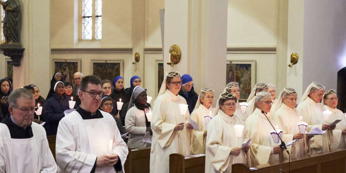 Van oudsher wordt de liturgie van het feest van de Opdracht van de Heer gekenmerkt door de symboliek van het licht. Wij zijn toegewijd aan het stralende plan van de Vader. Het gebedsuur begon dan ook met een plechtige intrede met kaarsprocessie. De bisschop werd vooraf gegaan door diaken en acolieten en een vertegenwoordiging van alle aanwezige godgewijden, iedereen met een kaars in de hand.