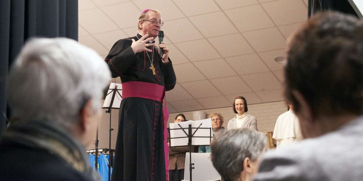 Na het gebedsuur konden alle aanwezigen genieten van thee, koffie, vlaai en het gesprek met elkaar in het gemeenschapshuis De Henkhof van Merkelbeek. Onze bisschop Mgr. Ron van den Hout maakte van de gelegenheid gebruik om de religieuzen te bedanken voor hun inzet in het bisdom Roermond en om alle aanwezigen te danken voor hun trouwe gebed. Ook berichtte hij over zijn recente reis naar India en de ontmoetingen die hij daar had met de katholieke gemeenschap aldaar. De dag werd besloten met een muzikaal intermezzo en het samen zingen van het toepasselijk lied "Heer, uw licht en uw liefde schijnen, waar U bent zal de nacht verdwijnen", als boodschap van hoop voor de mensheid vandaag.