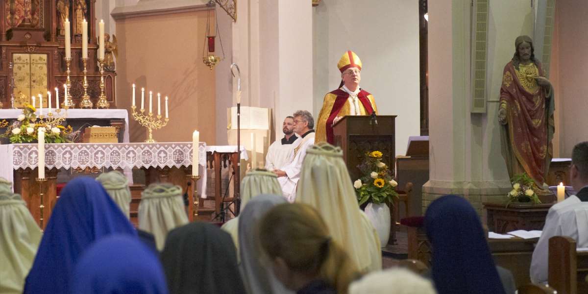 Met alle aanwezigen en de muzikale begeleiding van orgel en verschillende andere instrumenten werd het ontroerende lied "Wees stil voor het aangezicht van God" ingezet. Het werd dan ook intens stil in de Kerk. We richtten onze gebeden persoonlijk en gezamenlijk tot God. Het monikkendom en het contemplatieve leven, de missionarissen en de apostolische congregaties, de godgewijde maagden en de nieuwe vormen van godgewijd leven: ze lenigen in deze tijd de grote noden van de de mensheid door met gebed en soms risico voor eigen leven een straal van de goddelijke schoonheid en goedheid door te geven.
