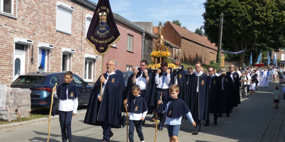 Na een feestelijke eucharistieviering vertrok de processie naar het heiligdom van Villers-Notre-Dame: de ruiters, het processiekruis en de vlaggen, de wagen als dank voor de vruchten van de aarde en de Fanfare Royale les Amis réunis van Ellezelles. Daarna kwamen de beelden die vreugdevol uitkeken naar hun jaarlijkse rondgang: Saint-Amand, Notre-Dame du Rosaire en Notre-Dame à Cailloux.