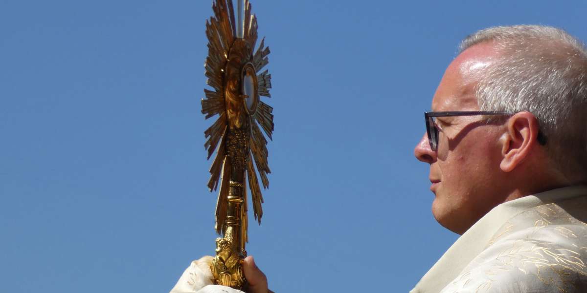Jezus in de Eucharistie, voorafgegaan door de kleine bloemenmeisjes die hun bloemblaadjes rijkelijk strooiden, en omringd door de geestelijken, de acolieten en de fakkeldragers, trok door onze dorpen om er zijn zegen in overvloed te verspreiden. De mensen met beperkte mobiliteit, die langs de weg zaten, kregen een bijzondere zegen.