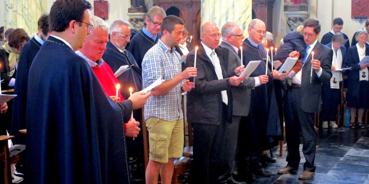 De feestelijk dag werd agfgesloten het bidden van de rozenkrans al wandelend en zingend door de tuin, en een moment van aanbidding in het bedevaartskerkje van Maria, Zetel van de Wijsheid in Villers-Notre-Dame.