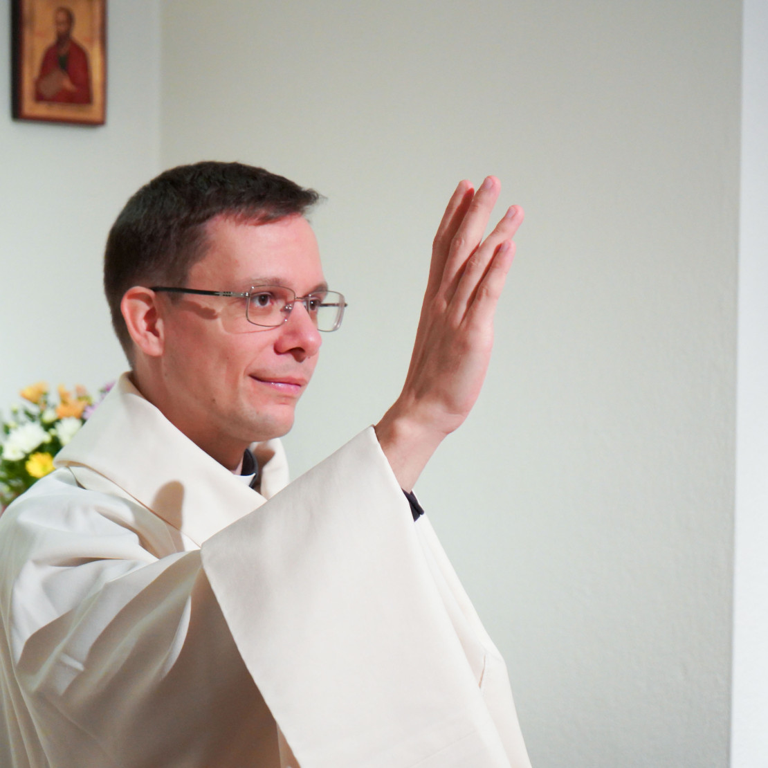 Moeder Julia Verhaeghe (1910-1998), de stichteres van onze gemeenschap, hechtte veel waarde aan de zegen van de priester. Ze vroeg deze regelmatig aan haar geestelijke leider en priester, Arthur Hillewaere (1888-1972).